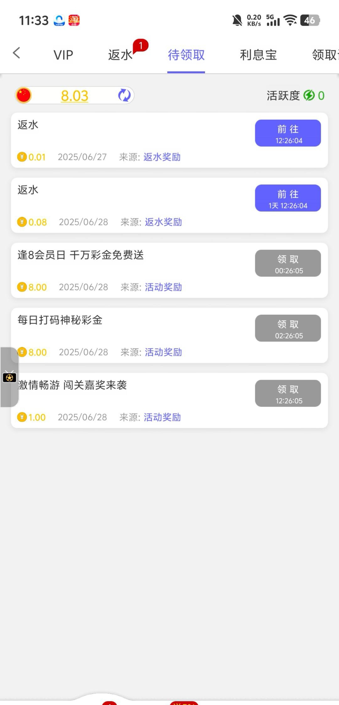 逢8彩金 有号的去待领取领有号的都有 送了反馈下兄弟们