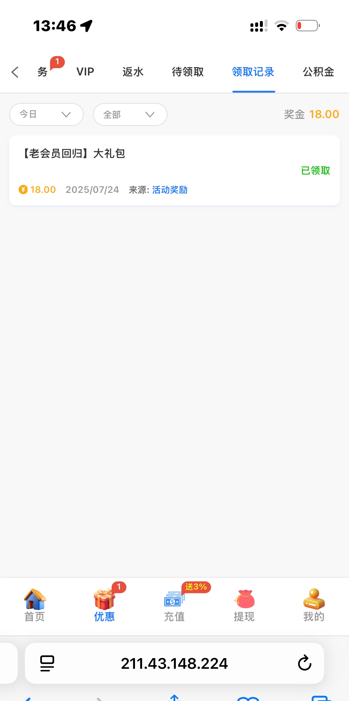 无聊上号看到有个回归彩金
