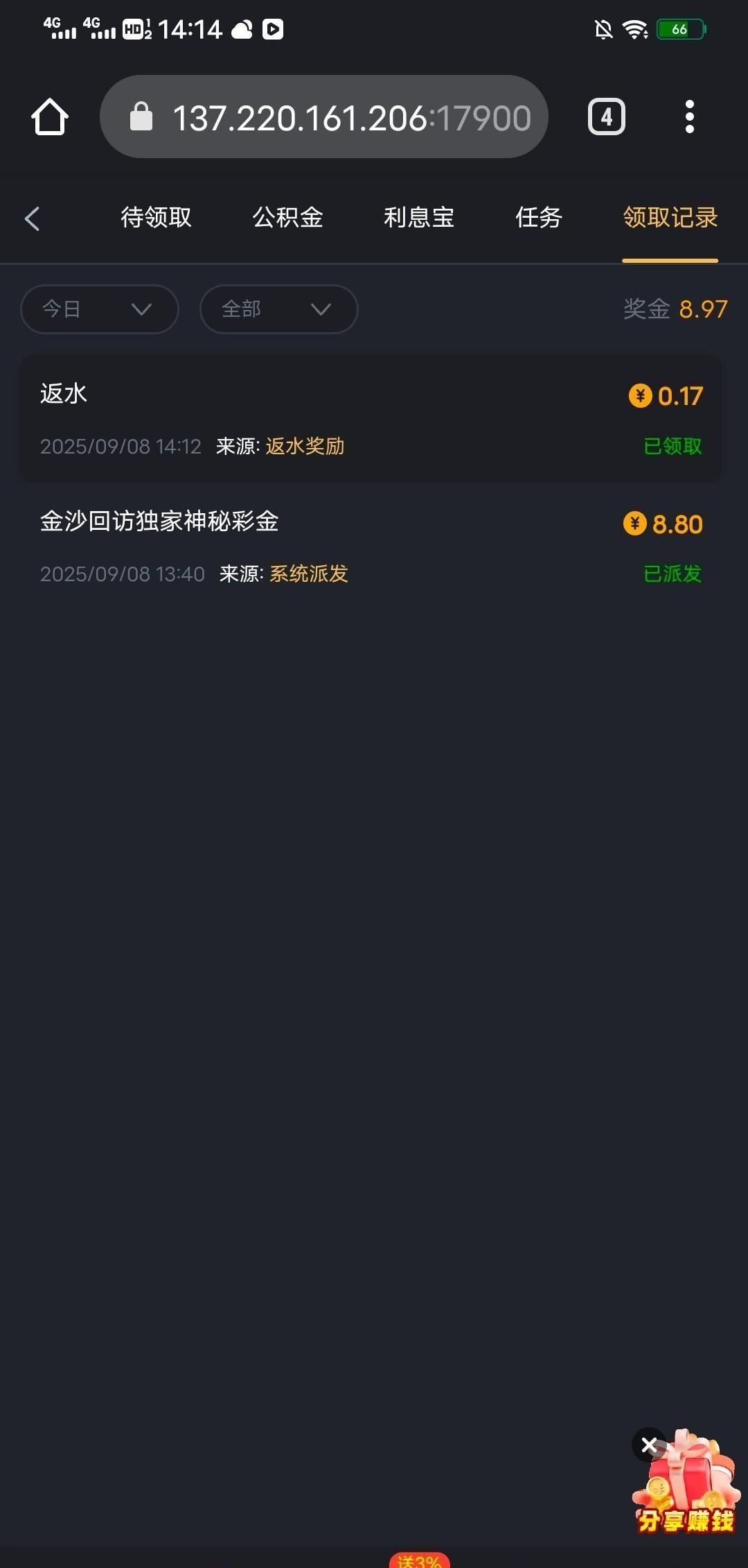 到账情况:自测(