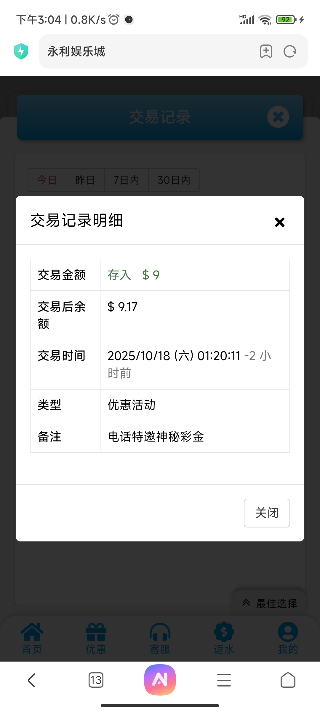 碰瓷电话彩金